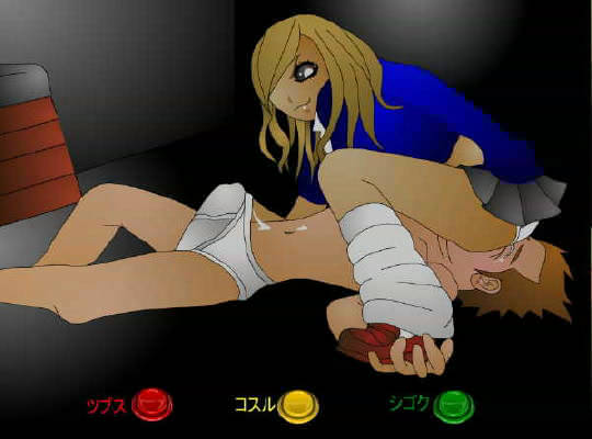 女の子に顔に座られシゴかれるFLASHゲーム。ツブス・コスル・シゴクのボタン操
