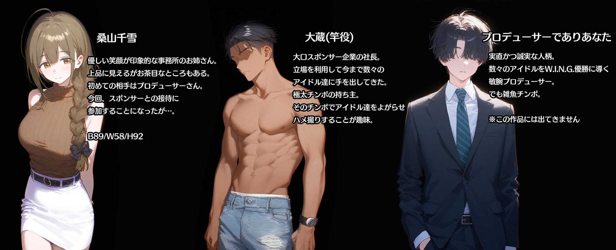 ジャンル: 寝取り・寝取られ・NTR、専売、男性向け、成人向け、巨乳、アイドル・芸能人、中出し、フェラ、おっぱい、鬱、妊娠・孕ませ、口内射精、寝取られ・NTR