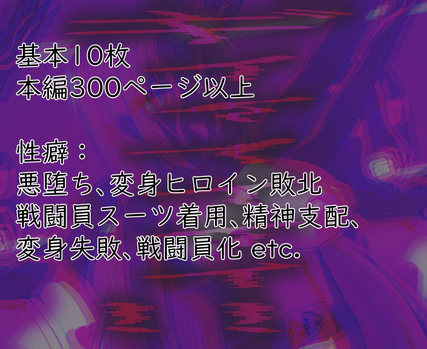 ジャンル: イラスト・CG集、変身ヒロイン、逆転無し、着衣、男性向け、成人向け、悪堕ち、洗脳、魔法少女、快楽堕ち、正常位、騎乗位