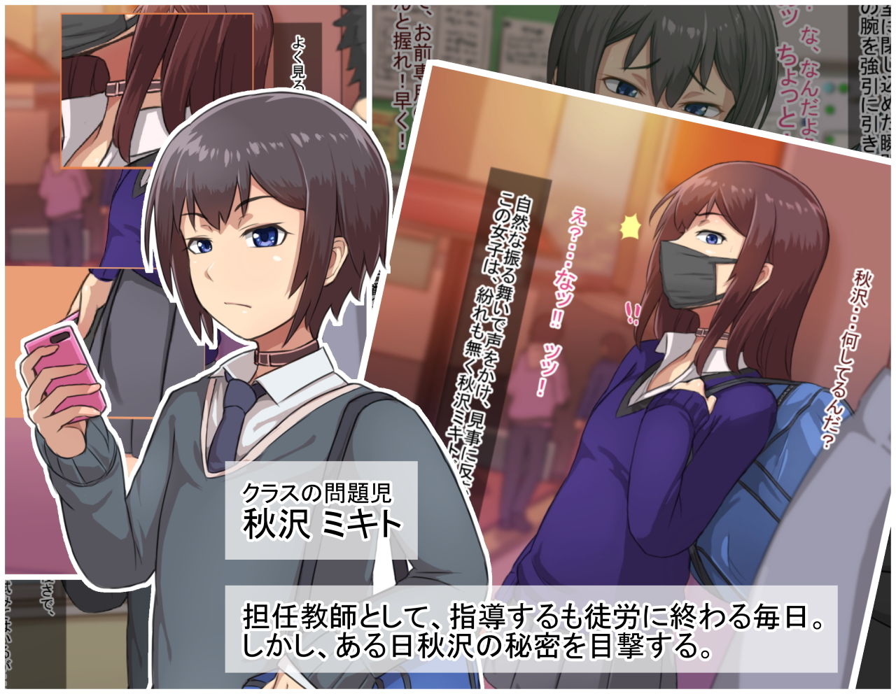 生意気な問題児である生徒♂を、担任教師♂が脅して犯して優等生のメス○キにするCG集。