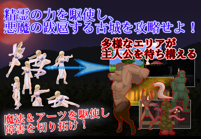ジャンル: 動画・アニメーション、デモ・体験版あり、触手、巨乳、アクション、おっぱい、お尻・ヒップ、異種姦、搾乳、ドット制作、男性向け、成人向け
