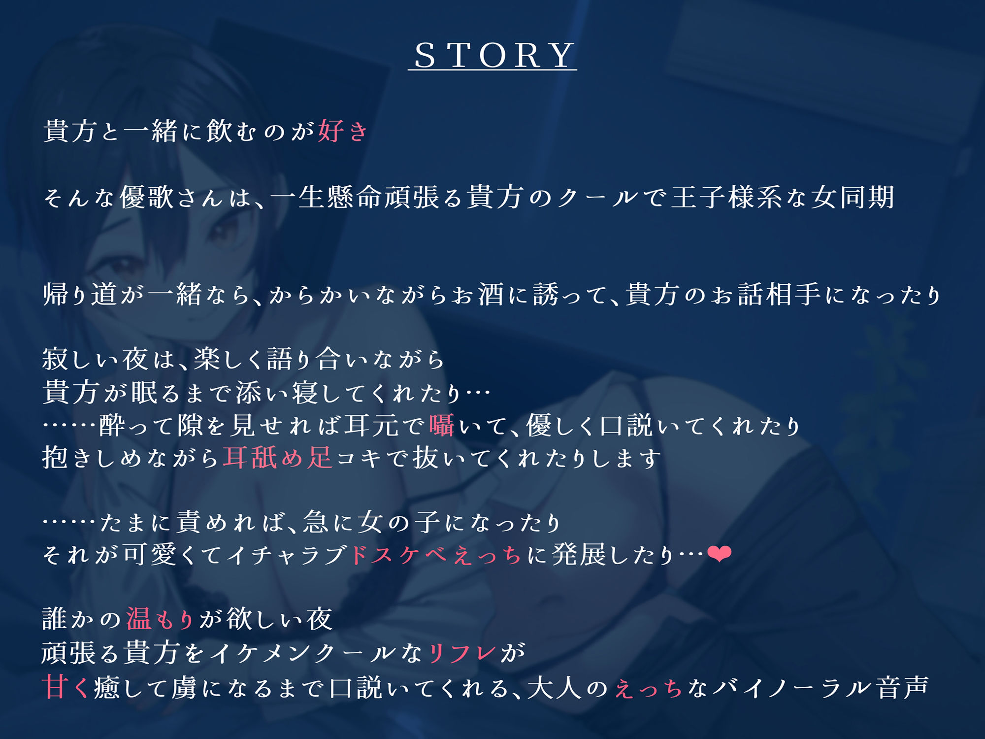 大人のほろ酔い甘リフレ〜あなたを酔わせて優しく口説いてくれる王子様系イケメンクールな女同期の優歌さん〜