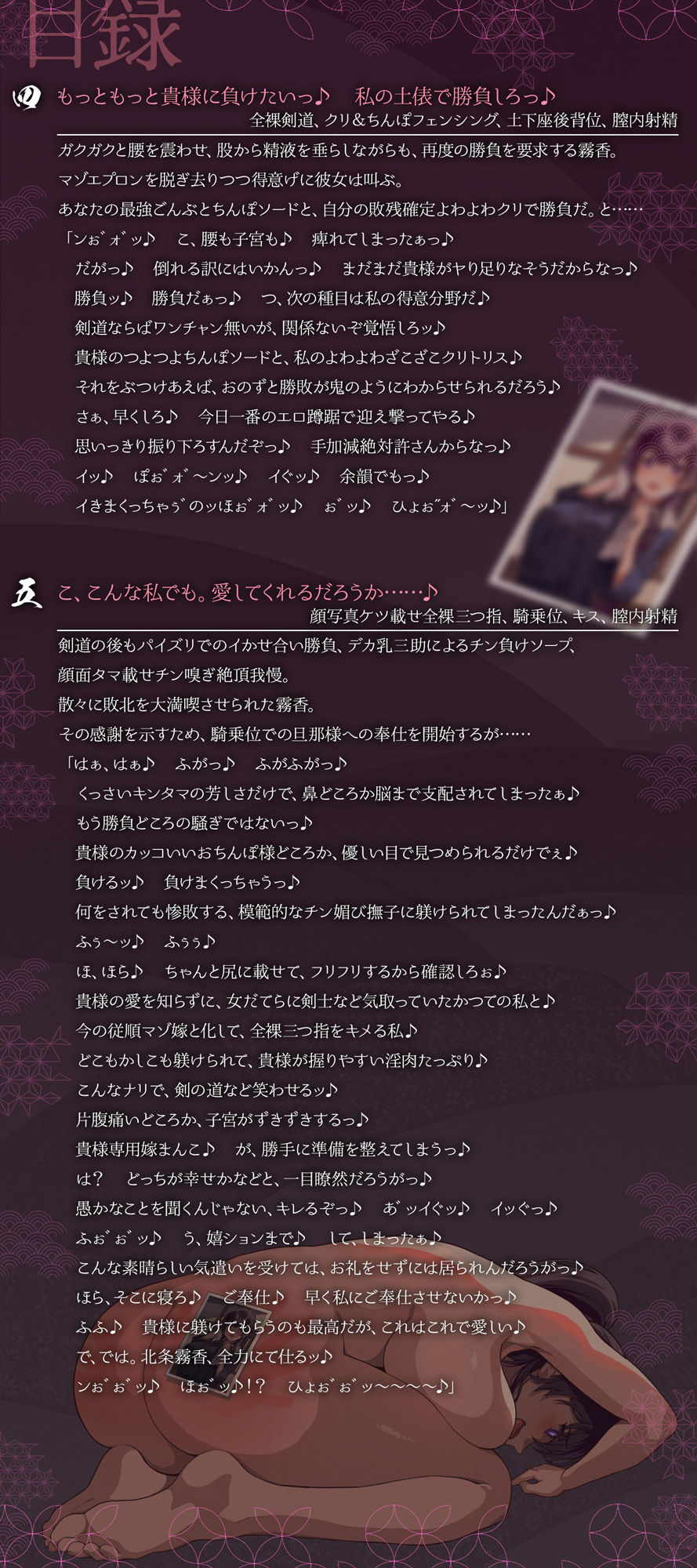 散々に敗北を大満喫させられた霧香。その感謝を示すため、騎乗位での旦那様への奉仕を開始するが……