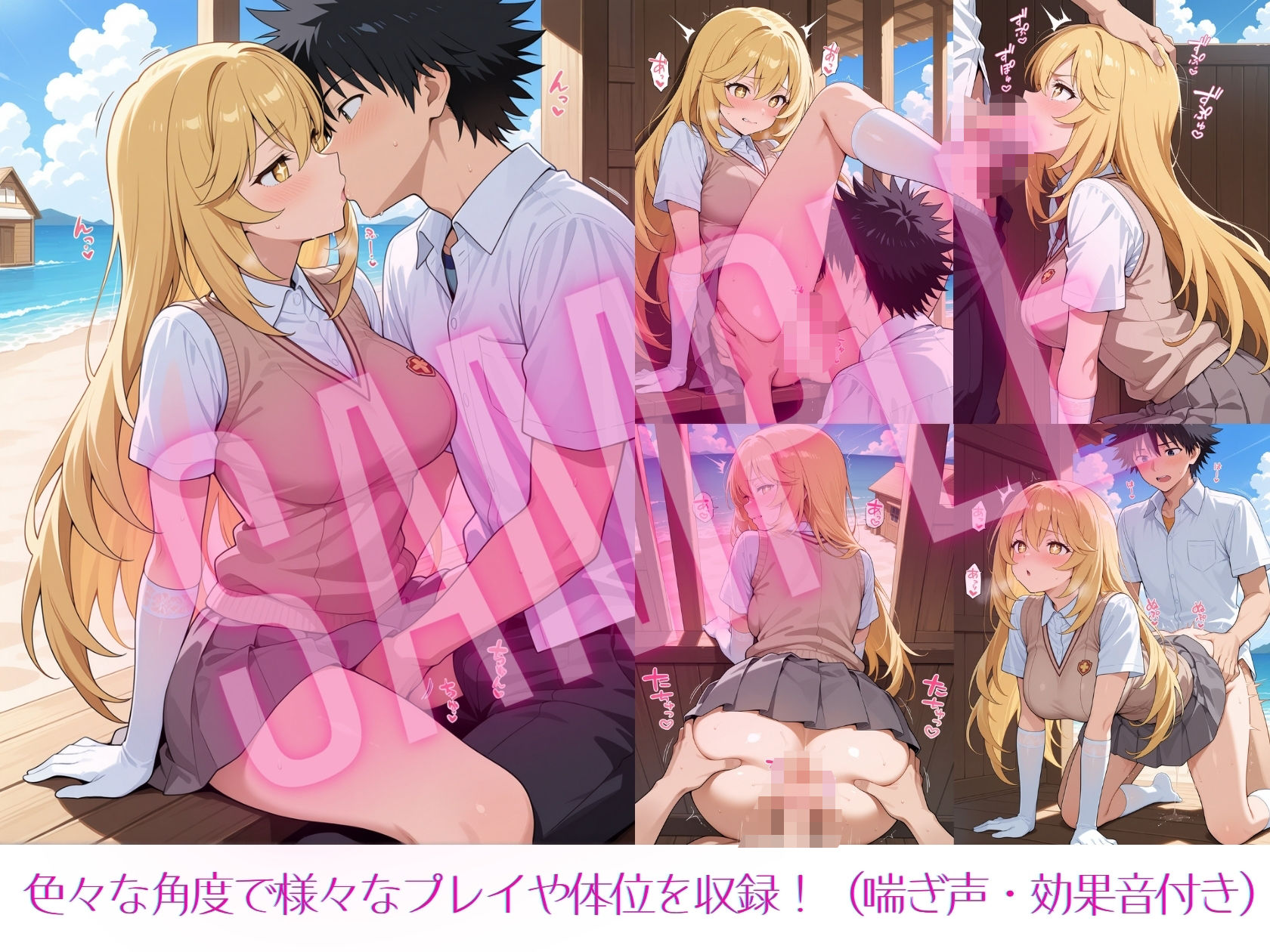 制服での着衣セックスから始まり、海でのエッチな絡みや岩陰でのセックス等のストーリーが分かるCG集となっております。