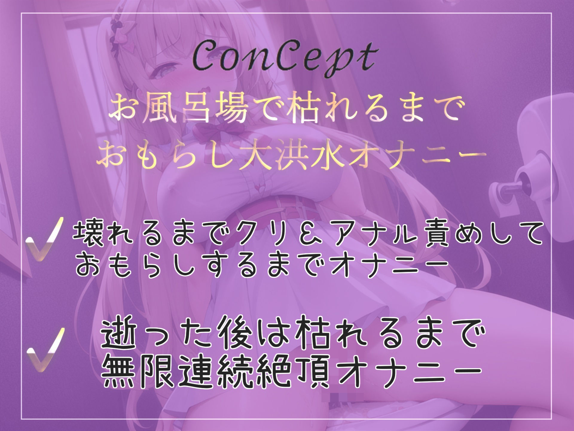 【新作価格】【豪華なおまけあり】【枯れるまでおもらし】男性経験のない真正ロリビッチがお風呂場で限界までおもらしオナニー!! アナルとクリの3点責めで空っぽになるまで連続絶頂&痙攣オナニー あらすじ