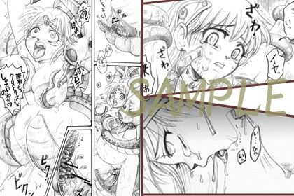 敵に捕らえられ、触手に拘束されたマ○ムとレ○ナ。