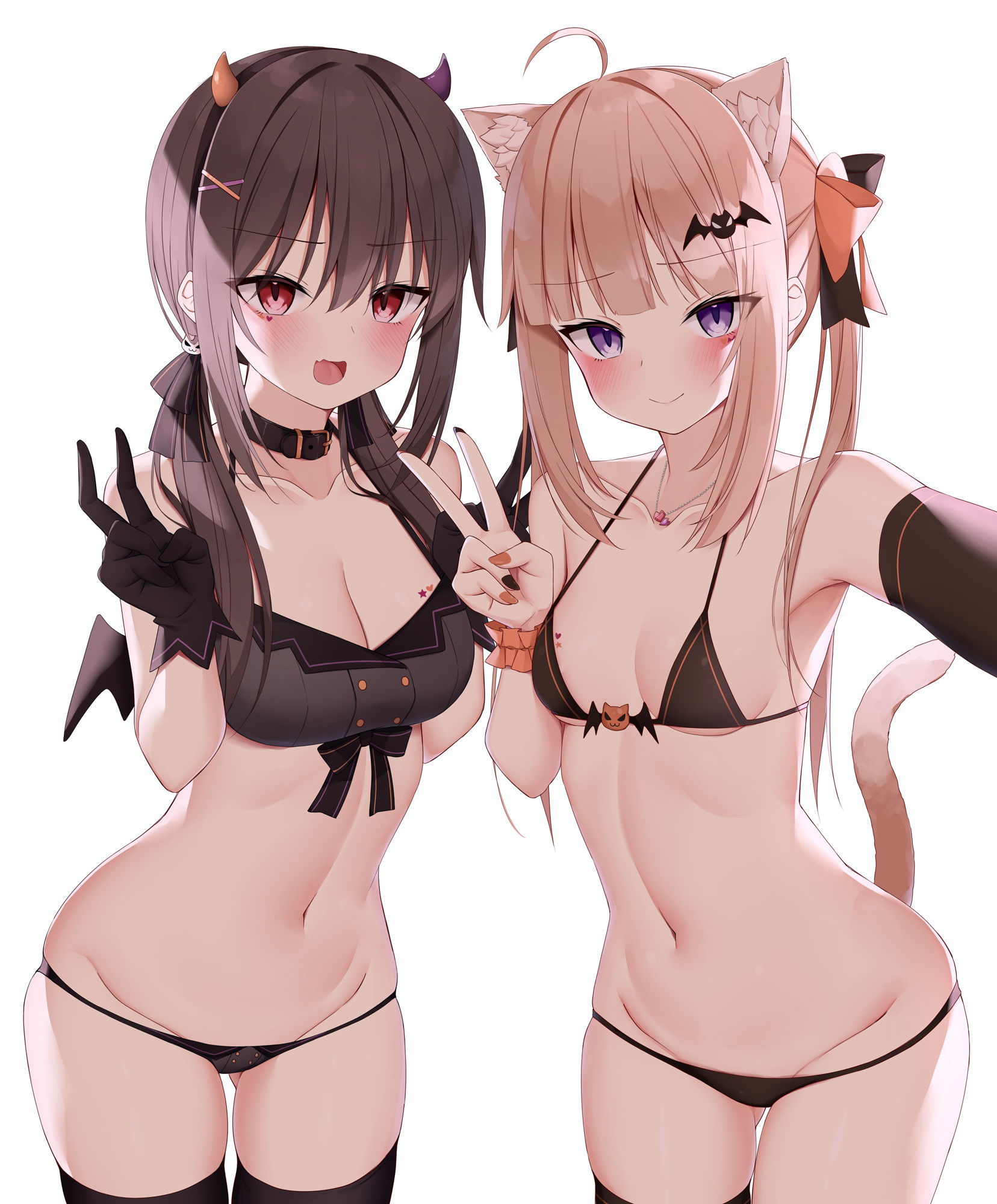 ハロウィンで賑わう街中でハロコス仲良し●●2人に逆ナンされて、そのままホテルで一晩中ラブハメ3P♪