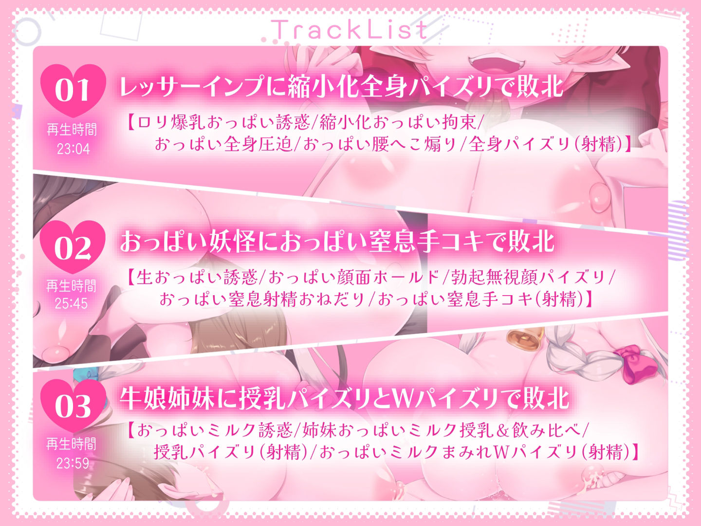 ジャンル: 巨乳、パイズリ、おっぱい、男性向け、成人向け、サキュバス/淫魔、男性受け、本番なし、授乳、シュリンカー/縮小化