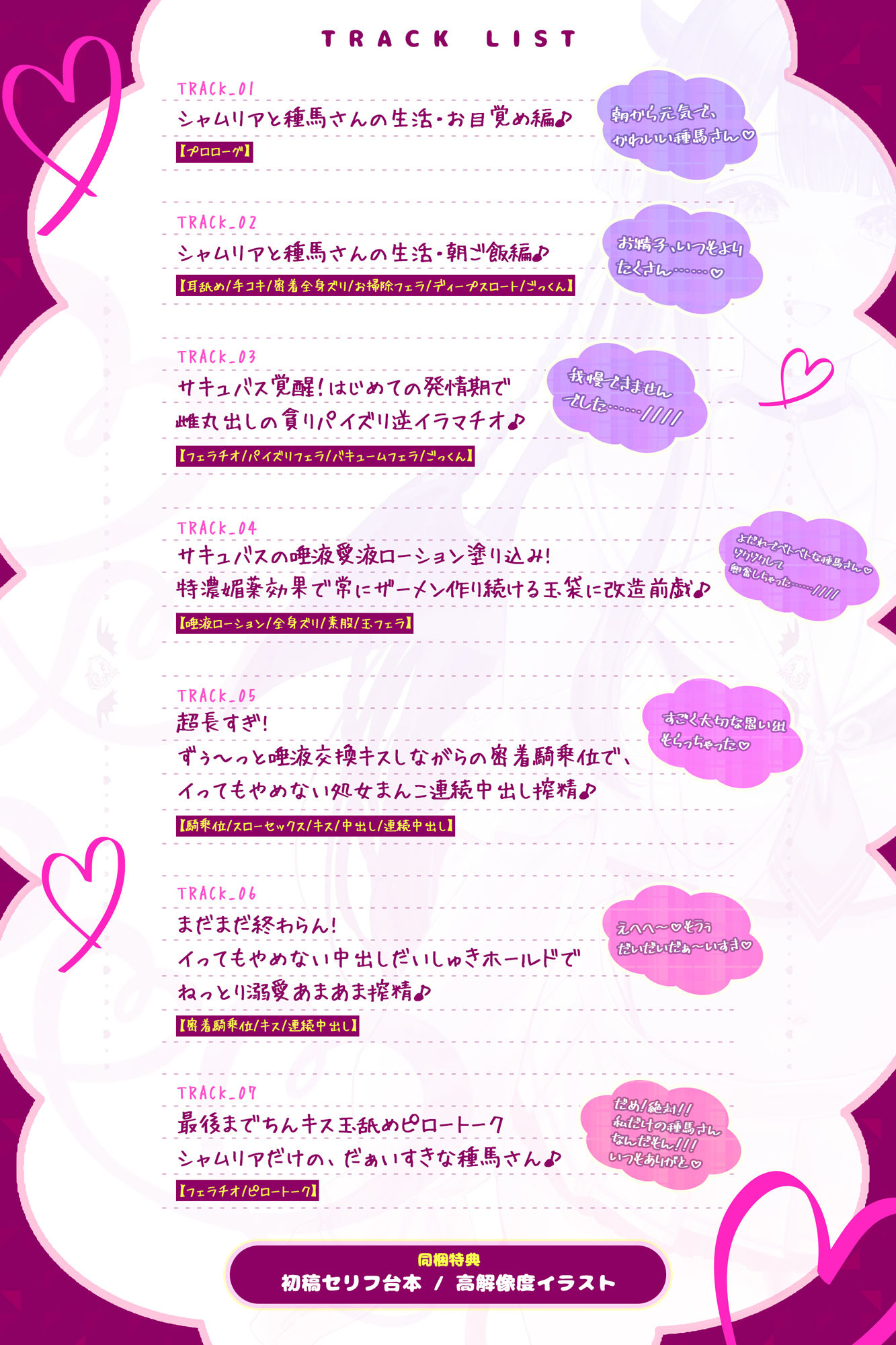 ▼トラック7:最後までちんキス玉舐めピロートーク シャムリアだけの、だぁいすきな種馬さん♪(04:23)