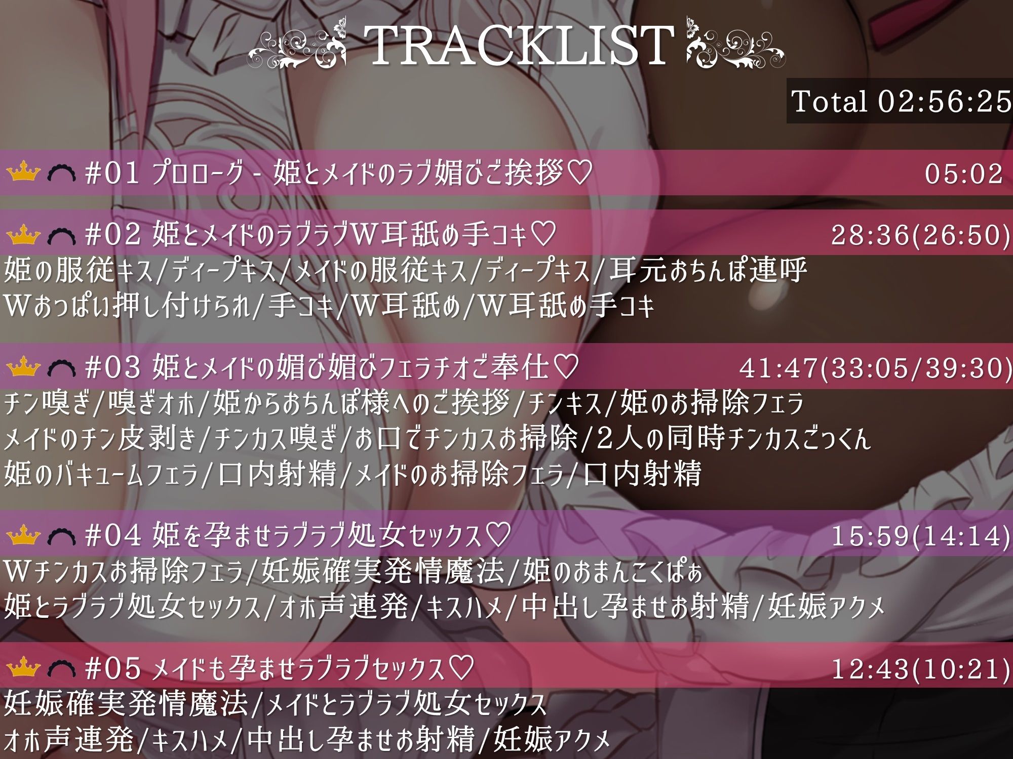 Wチンカスお掃除フェラ/妊娠確実発情魔法/姫のおまんこくぱぁ/姫とラブラブ処女セックス/オホ声連発/キスハメ/中出し孕ませお射精/妊娠アクメ