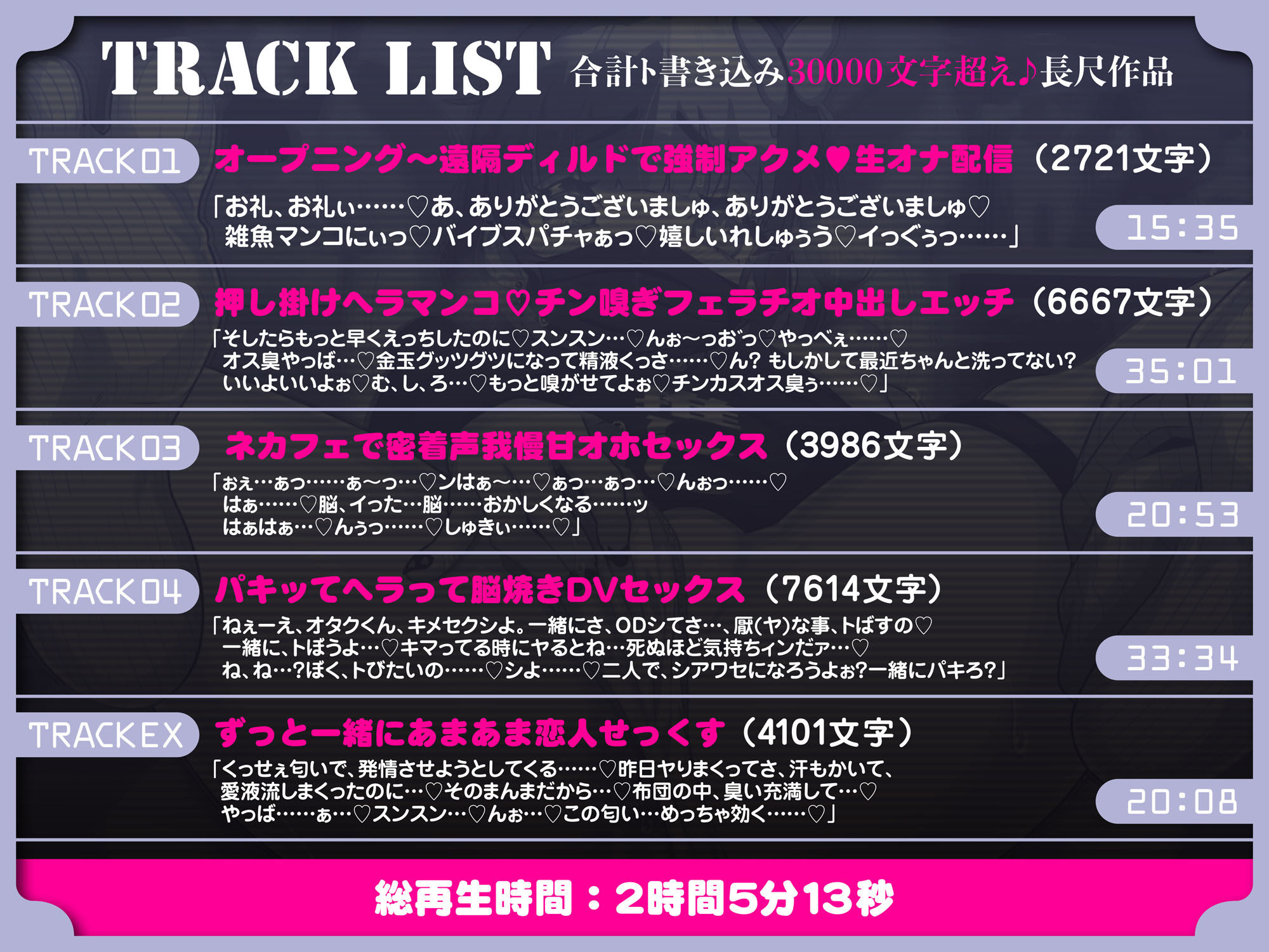 ◆TRACK LIST◆ 合計ト書き込み30000文字超え♪長尺作品