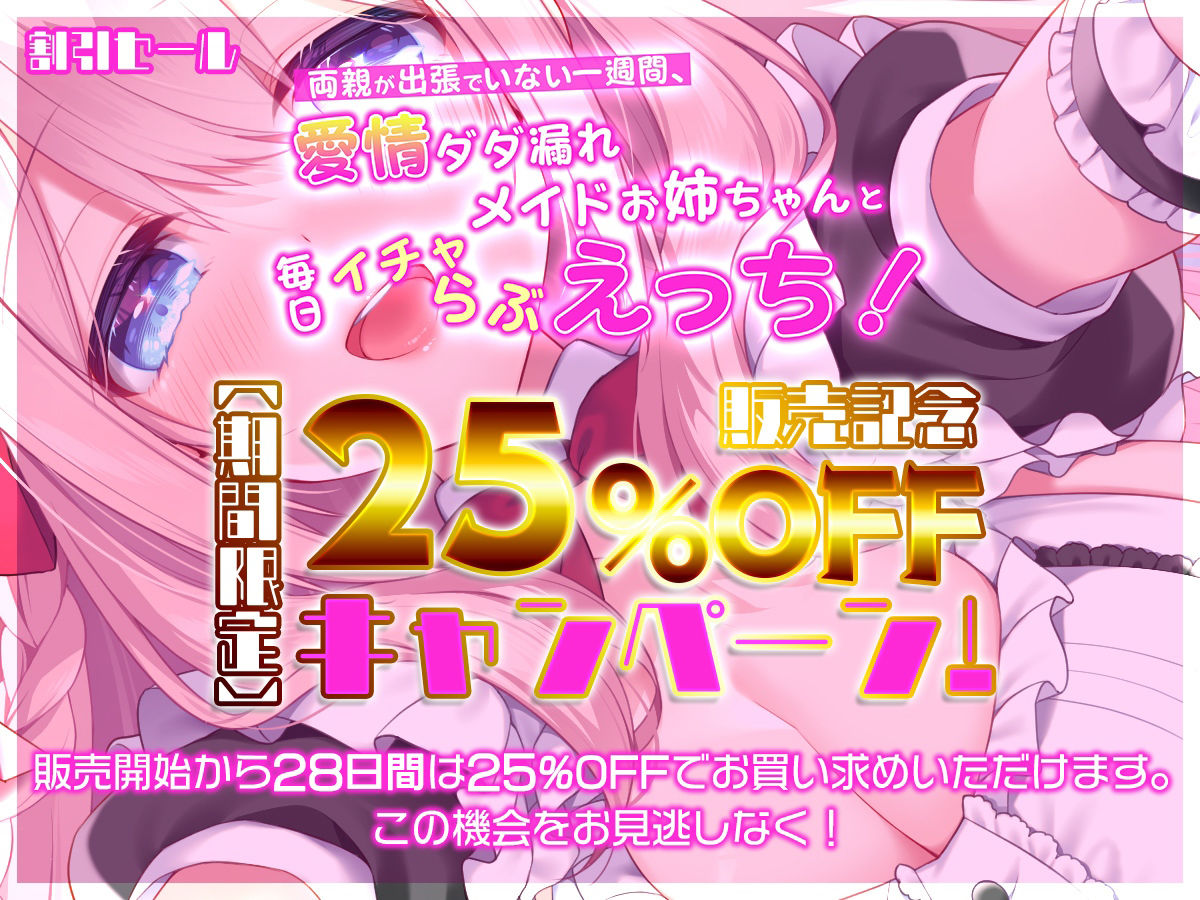 【【連続射精チャレンジ】両親が出張でいない一週間、愛情ダダ漏れメイドお姉ちゃんと毎日イチャらぶえっち!【処女メイド】】 作者名