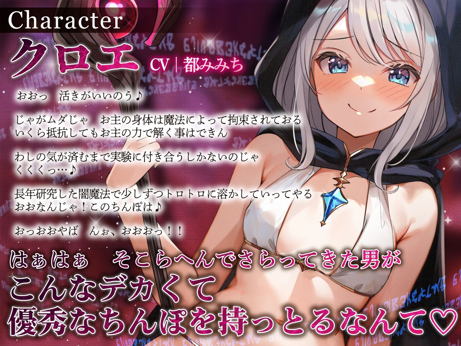 ジャンル: ファンタジー、中出し、フェラ、おっぱい、男性向け、成人向け、耳舐め、手コキ、口内射精、魔法使い/魔女、オホ声、種付けプレス