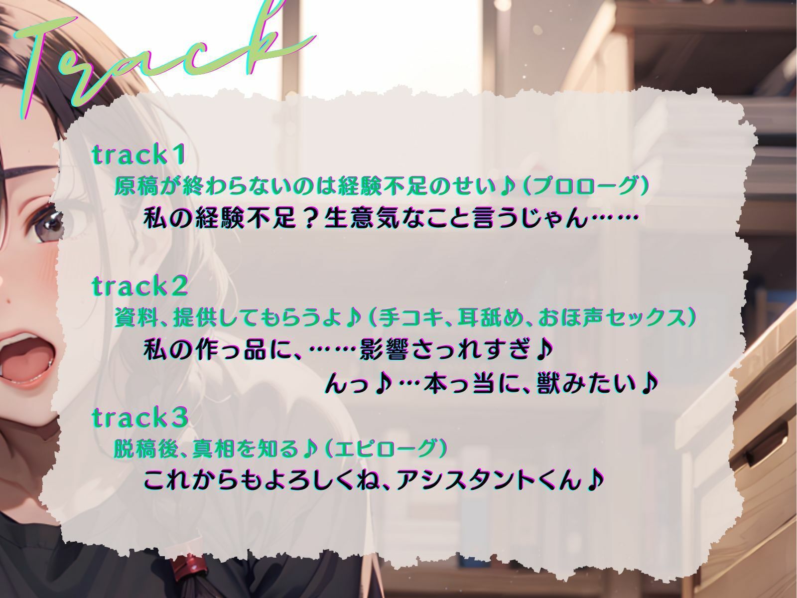 track2:資料、提供してもらうよ♪(手コキ、耳舐め、おほ声セックス)