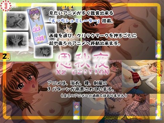 「思秋夜X2 EDITION」は、販売終了した「思秋夜/思秋夜-アニメ集-」の2作品を1本に統合して改訂・増補した作品です。