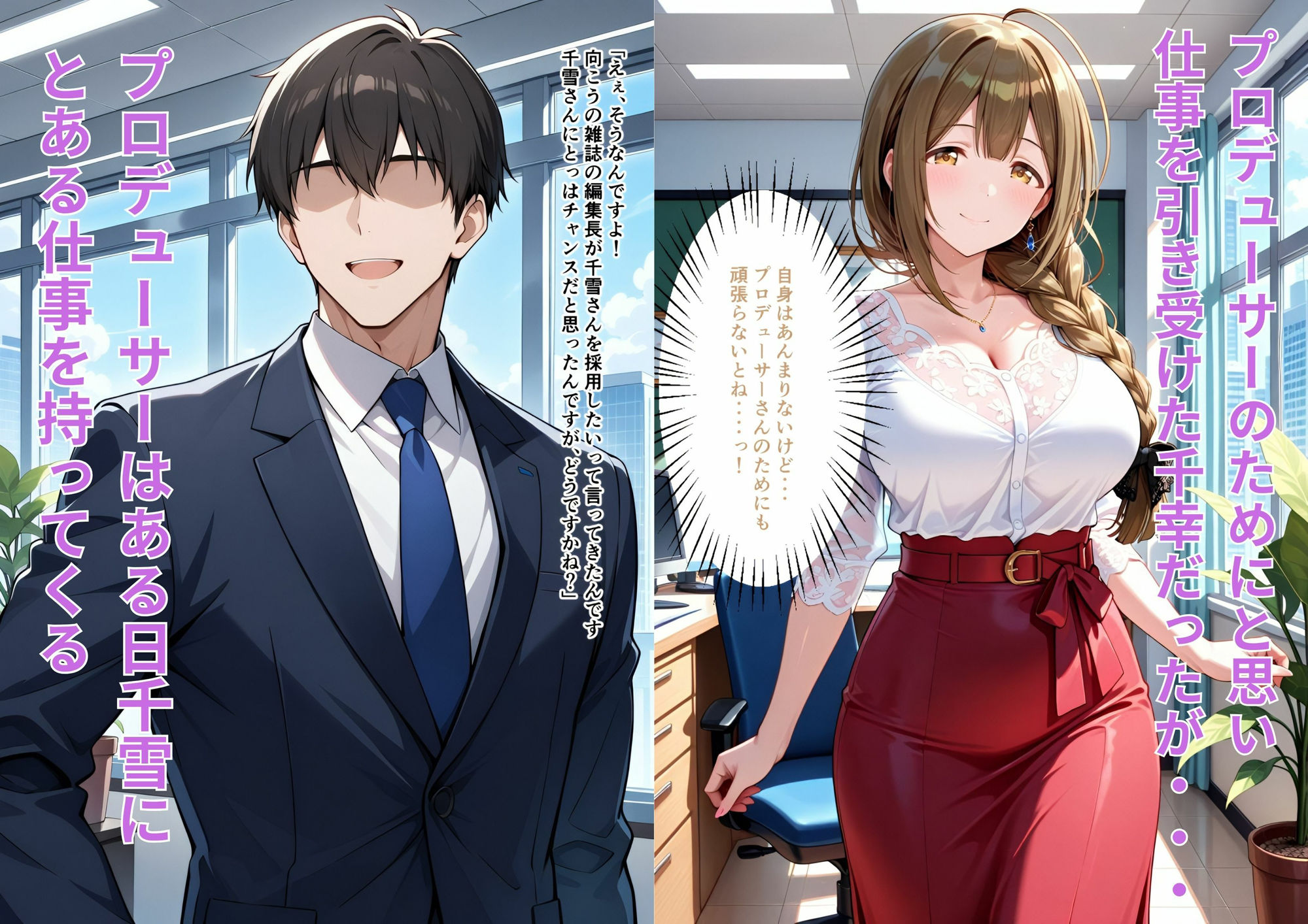 事務所の中でもお姉さん的な立場であり、メンバーからも頼られることが多々ある千雪は、ある日プロデューサーからとある仕事を紹介される。それはグラビアの仕事であり、千雪はそこに多少の抵抗を示しながらも、プロデューサーのためにも仕事を受けるのだった。