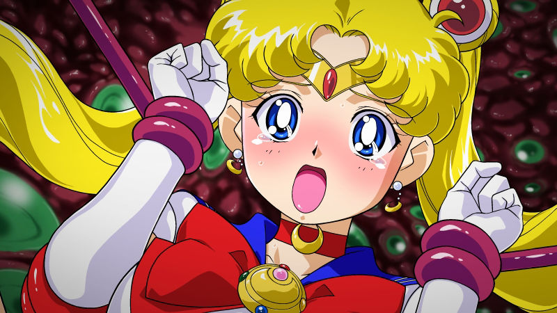 触手に捕まり、機械的に貫かれ続けるセー〇ームーン……