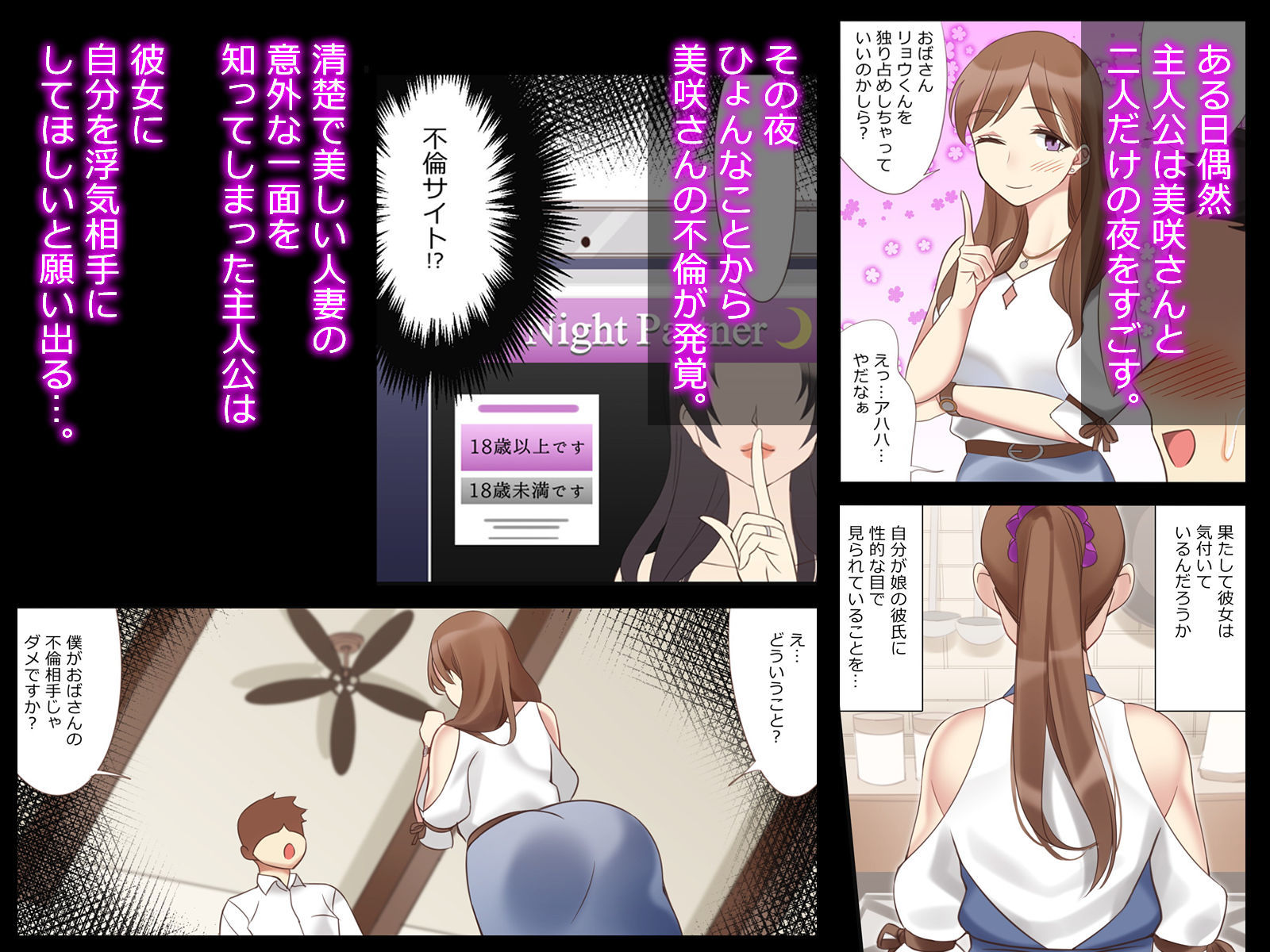 ある日、ひょんなことから美咲さんの不倫を知ってしまった主人公は、自分を浮気相手にしてほしいと彼女に願い出る…。