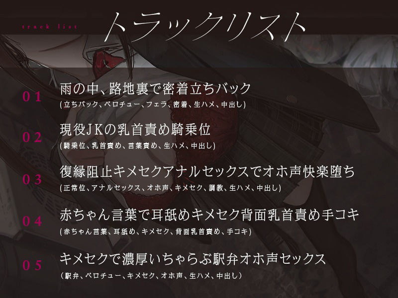 (赤ちゃん言葉、耳舐め、キメセク、背面乳首責め、手コキ)