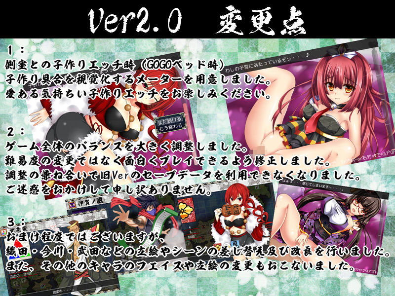 ジャンル: 巫女、お姫様、中出し、ハーレム、シミュレーション、歴史、戦場、妖怪、和姦、男性向け、成人向け
