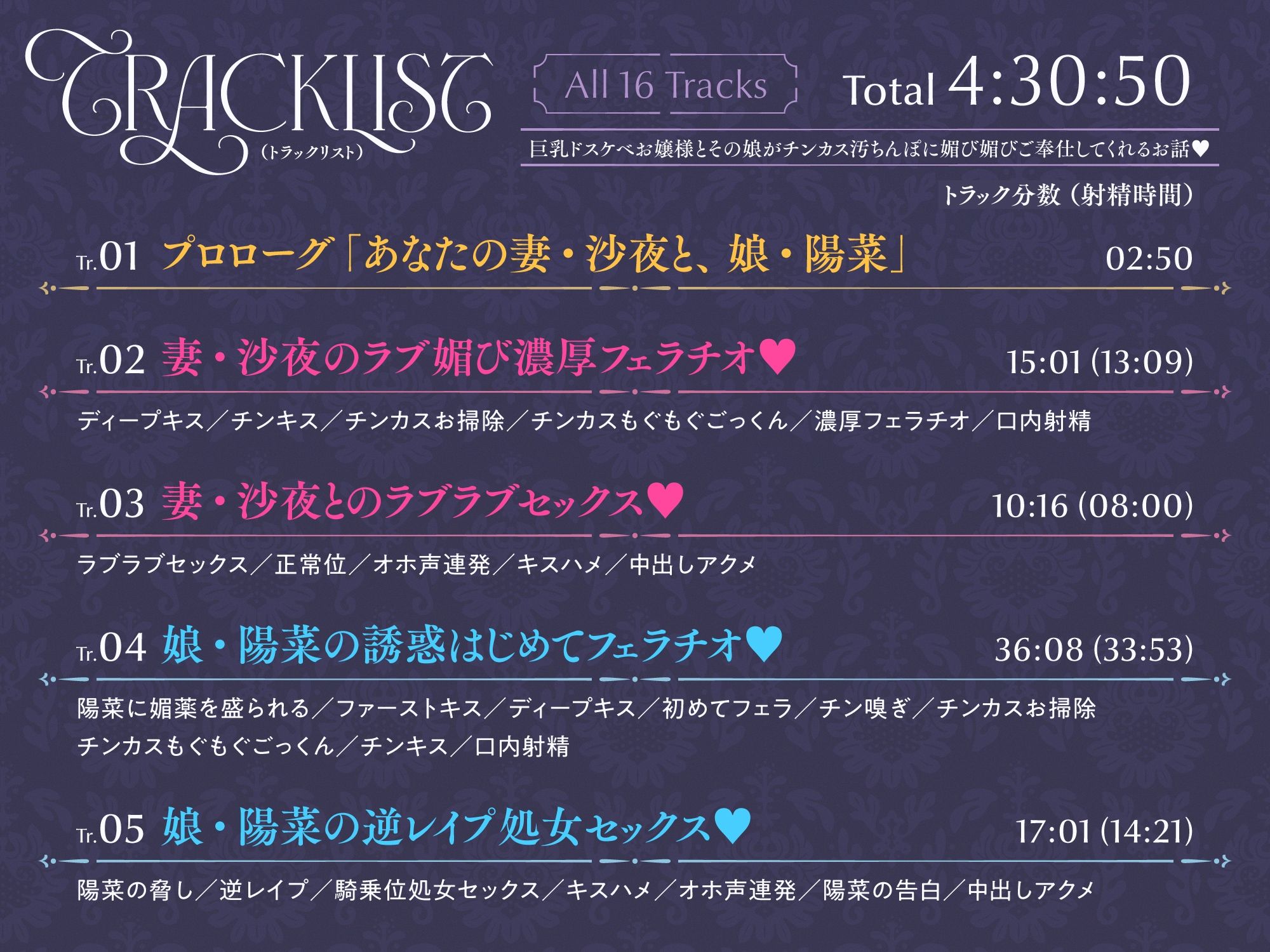 母娘の媚びハメ懇願競争/沙夜とセックス/陽菜の耳もと解説/オホ声連発/キスハメ/中出し懇願/中出しアクメ