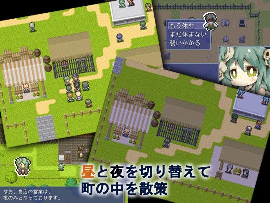 昼と夜を切り替え、舞台となる町の中を散策して特定の娘さんを襲い