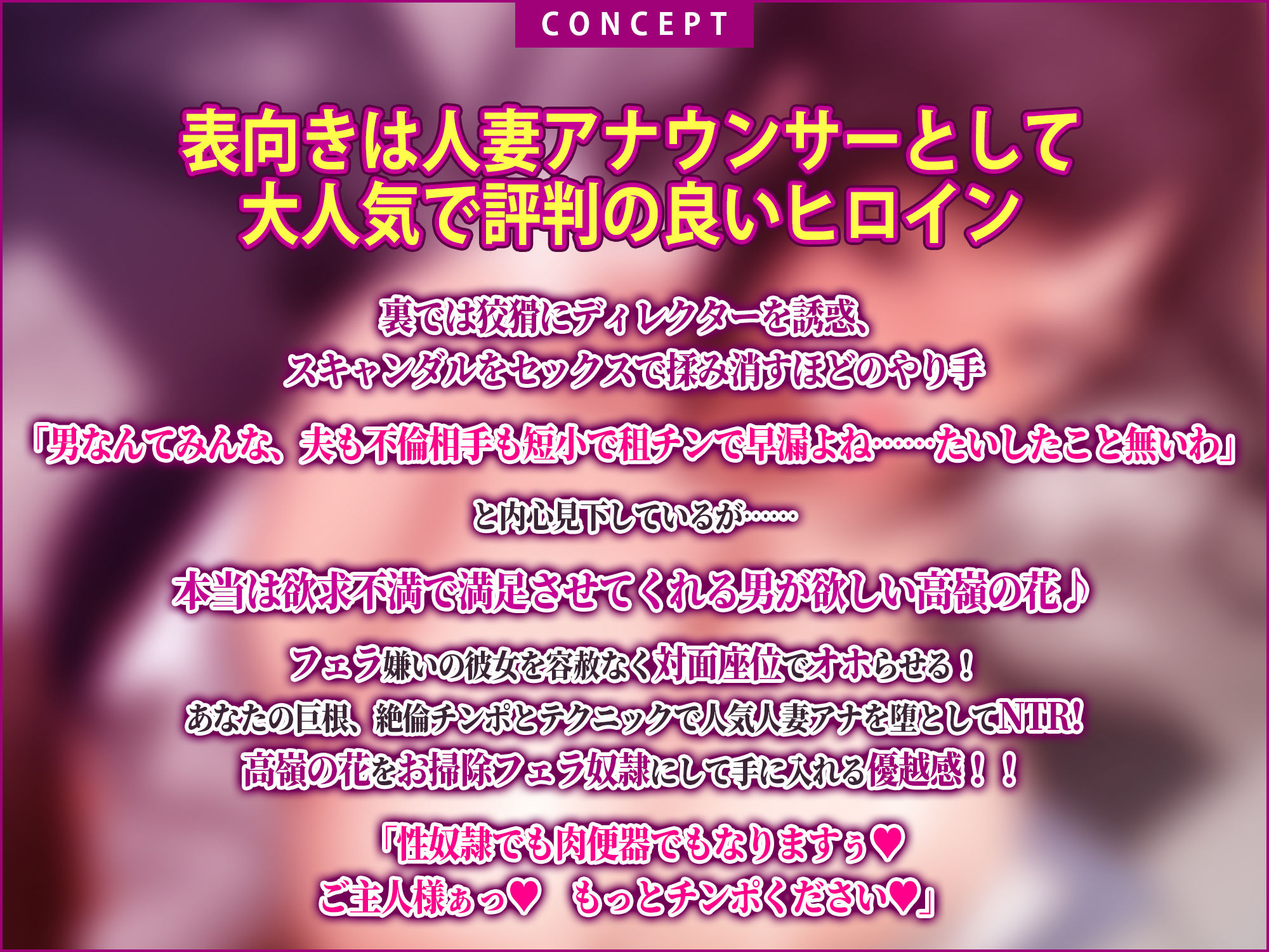 ーー表では大人気人妻アナウンサー、裏ではやり手で内心男を見下してる野心家♪